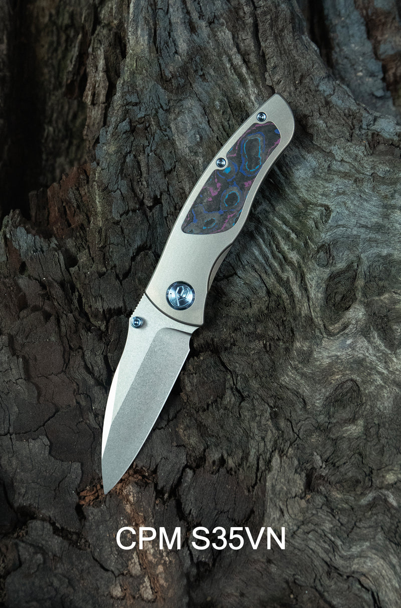 KB Folklore Folding Knife Original Crystallized Titanium Handle 3.42'' Belt Satin M390 Blade KB444D